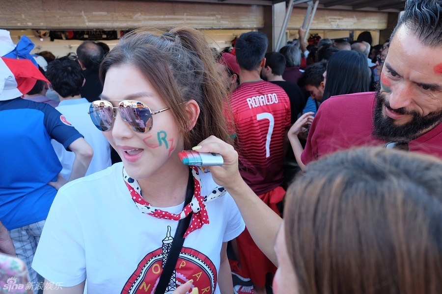 李彩桦变迷妹亲赴赛场为C罗加油 高马尾清爽可爱