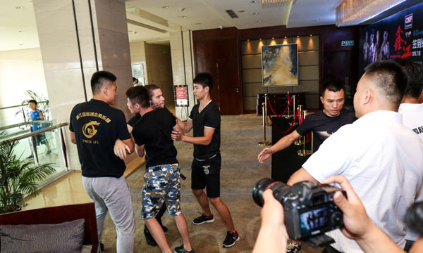 另外,在发布会中还出现了戏剧性的一幕。被称为“美国孙悟空”的吉奥·乔凡尼在选手发言环节竟在背景墙的选手海报上把对手包音那的照片画上印记,以表挑衅。而包音那则更是送给了吉奥·乔凡尼一副“紧箍”,并解释说:“因为他太嚣张了,我要收了他!”随后两人针锋相对,互相放下狠话,令现场气氛空前紧张。在发布会结束后,两位选手更是互相推攘大打出手,所幸被现场工作人员及时拉开,没有使矛盾进一步升级。